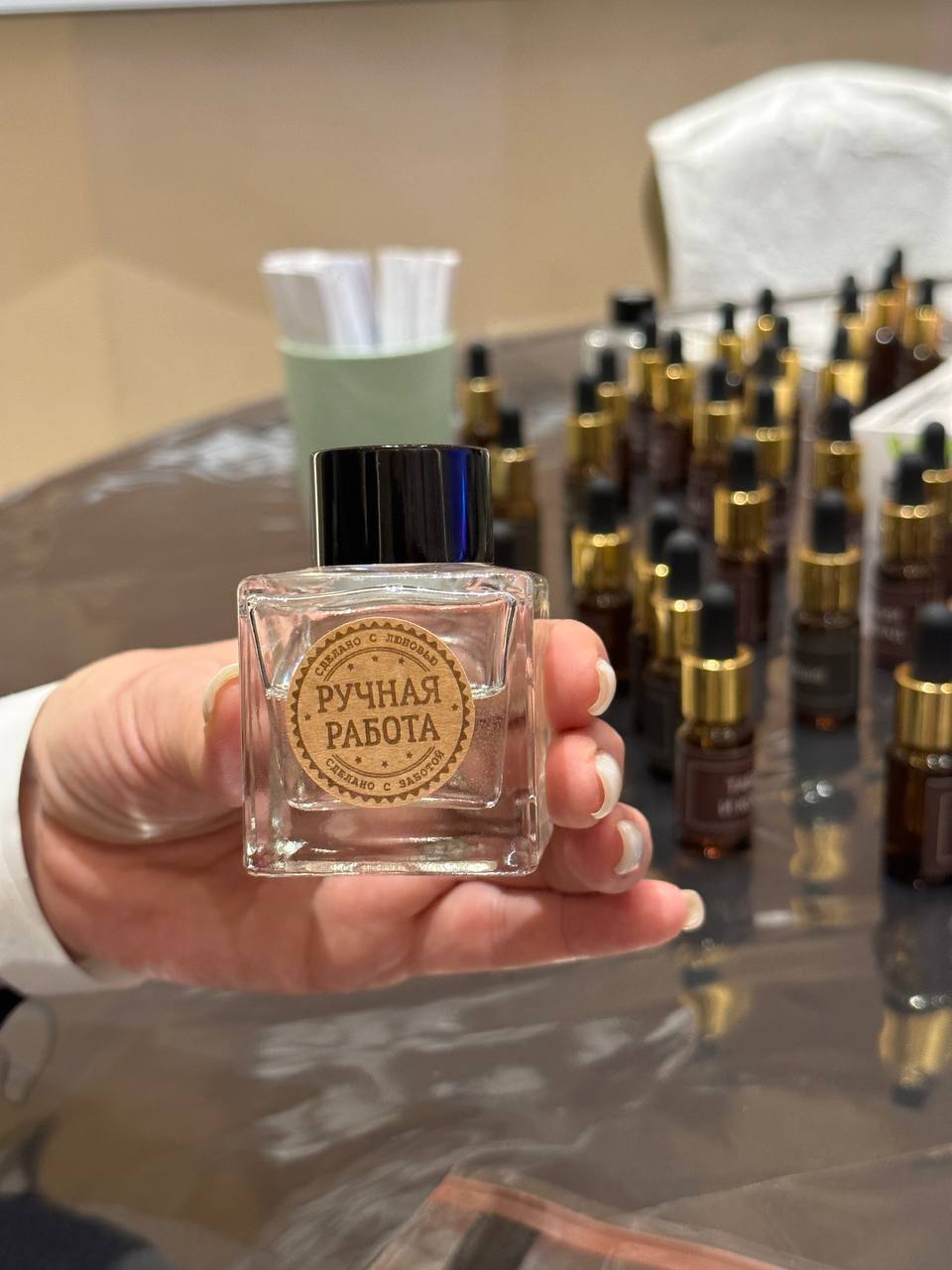 Суть мастер-класса. Участники мастер-класса создают собственный интерьерный аромадиффузор в стеклянном флаконе, подбирая индивидуальную ароматическую композицию. Перед началом мастер рассказывает базовую информацию о строении ароматов (верхние, средние, базовые ноты), правилах комбинирования и дозировке. Гости слушают тестовые композиции, выбирают ароматы, смешивают их в заданной пропорции с парфюмерной базой, а затем оформляют готовый диффузор декоративной крышкой и ротанговыми палочками. Готовое изделие можно упаковать в подарок.