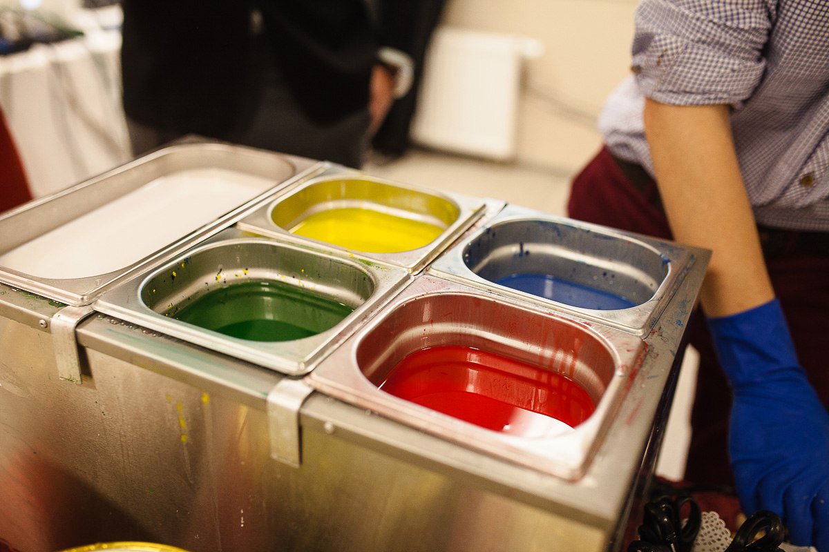 Суть мастер-класса. Участник обильно смазывает кисть руки жирным кремом, после чего опускает руку в ведро с максимально холодной водой на 20-30 сек. Далее, при помощи мастера, руку опускают в гастроемкость с горячим воском на секунду и затем опять в холодную воду, для застывания воска. Так необходимо повторить 7-9 раз, после чего мастер аккуратно снимает слепок и приплавляет его к специальной подставке из воска.
